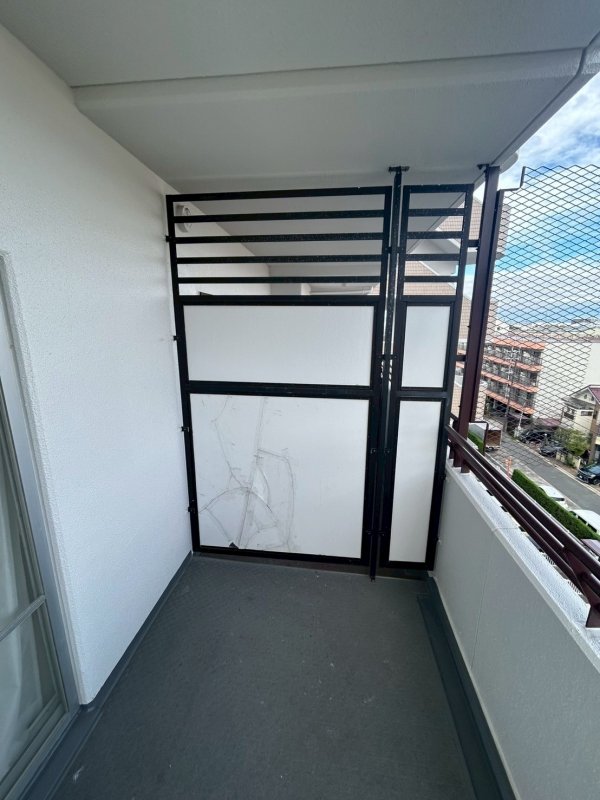 【放置厳禁】ベランダパーテーションが割れたら?大阪で選ばれる隔板修理、交換サービス(仕切り板、蹴破り戸、割れ、破損、ヒビ:東大阪市 分譲マンション)